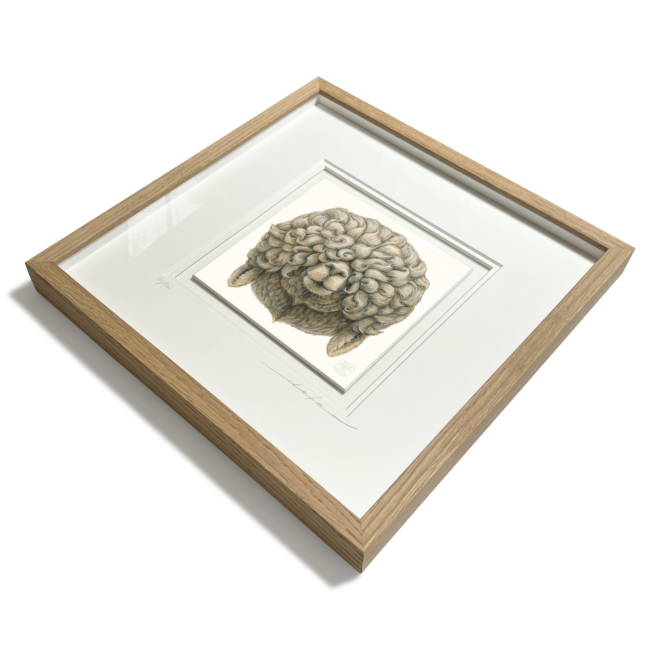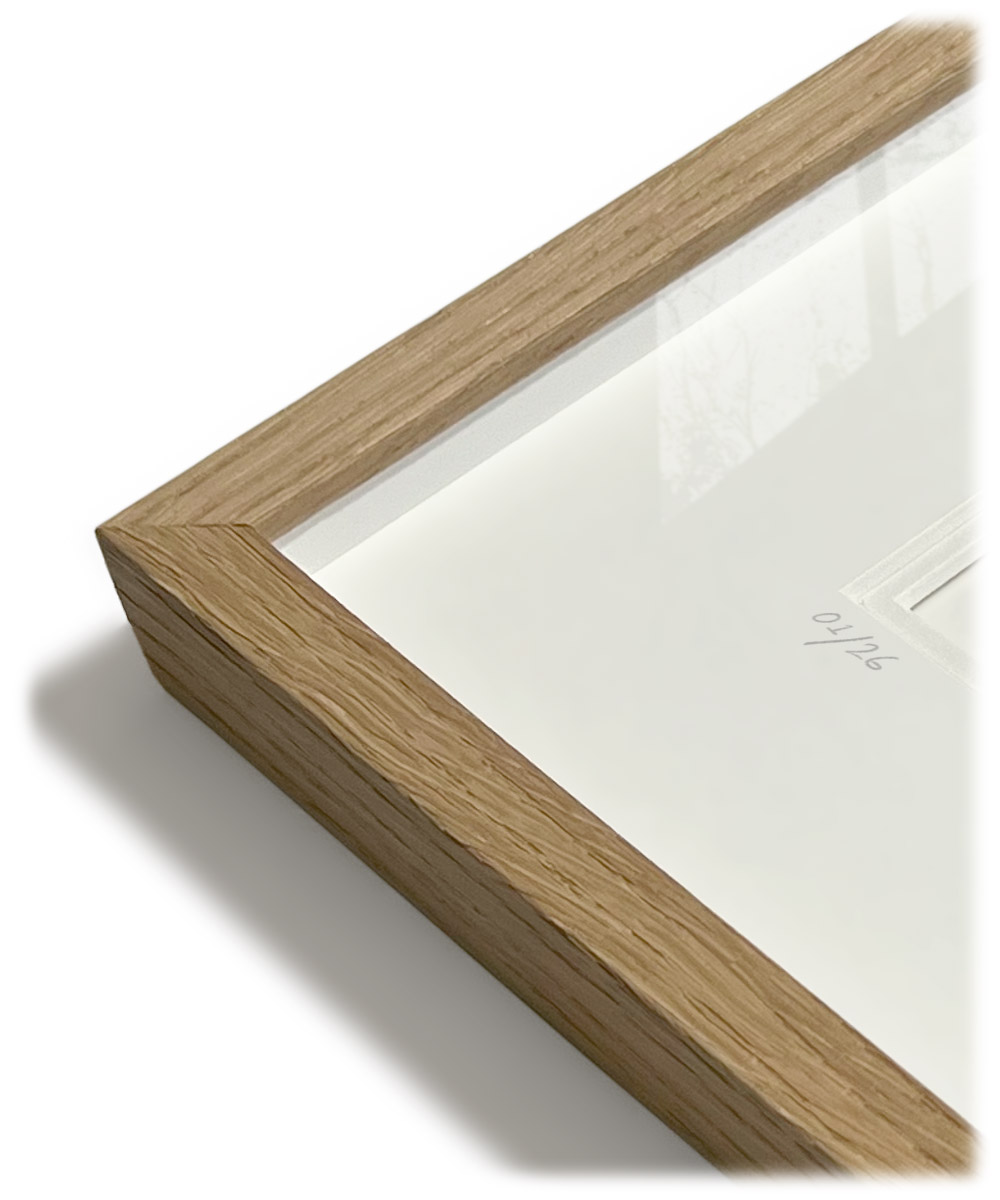 The prints are signed and numbered, framed floated and double matted, behind museum glass (non reflective glass with UV-filter) in a handmade wooden frame.